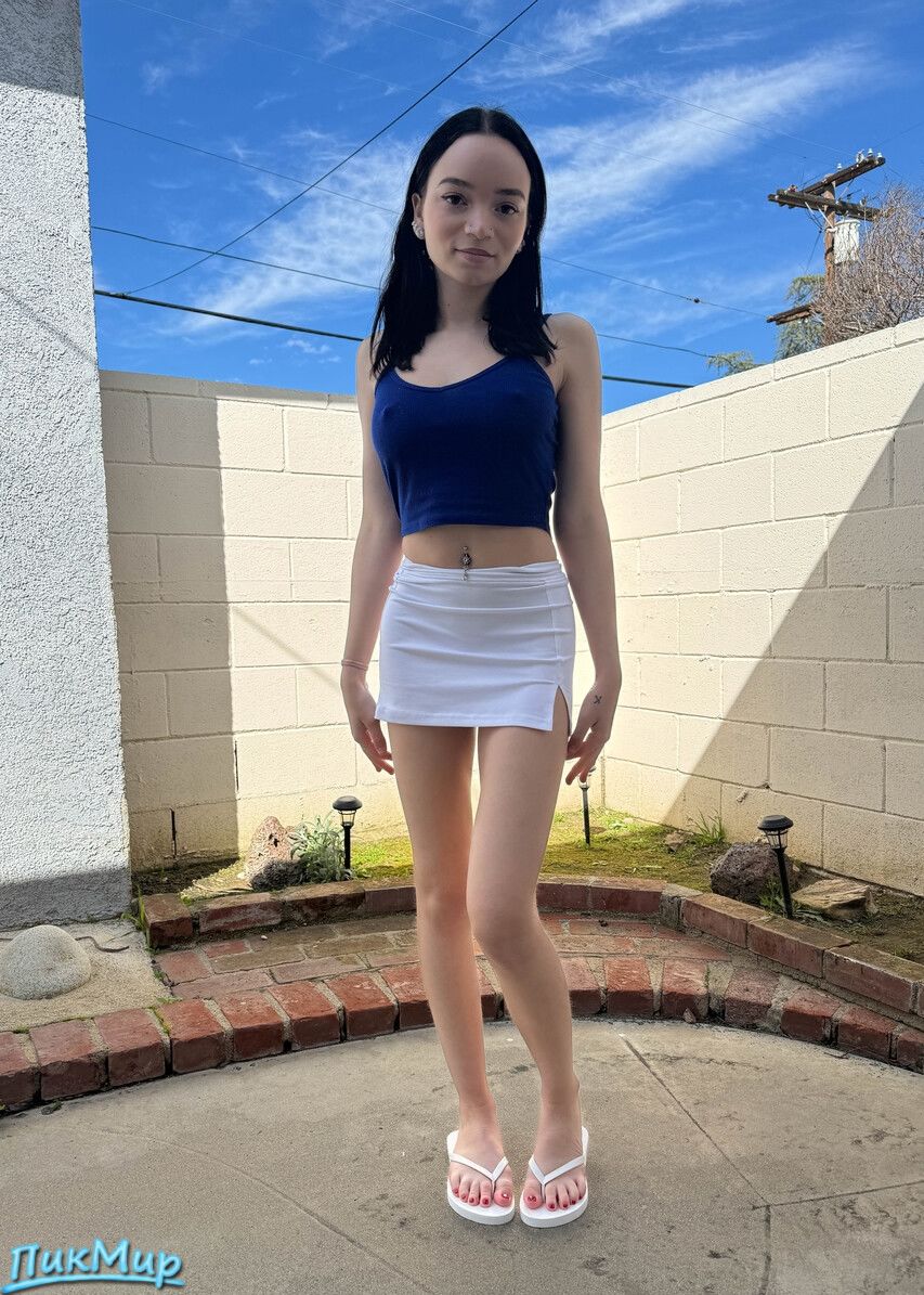 Красивая невысокая девочка показывает свои прелести
