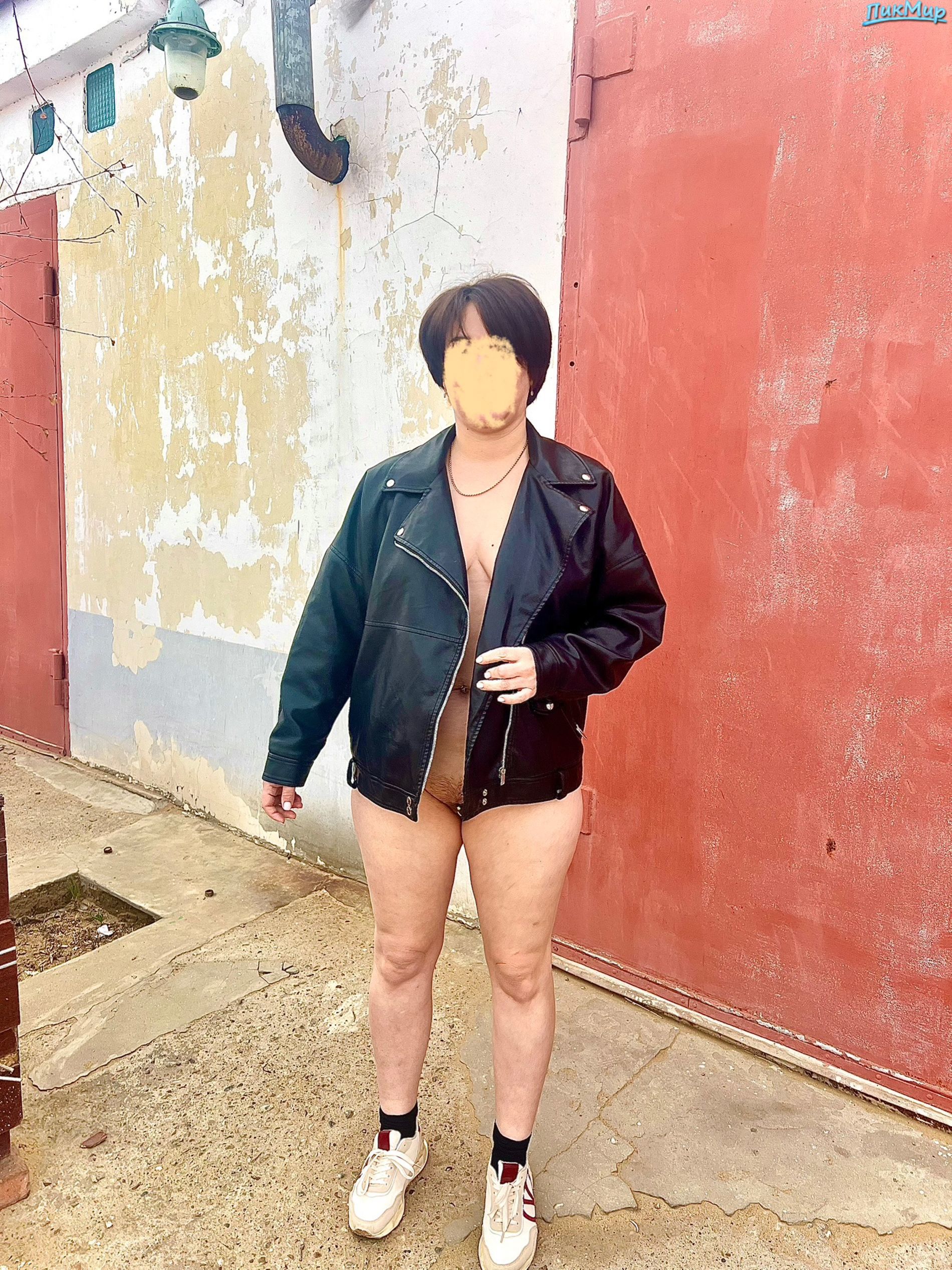 Марина позирует у гаража
