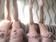 Юннона же, напротив, в первой части фотосессии стесняется, отварачивая личико и закрываясь волосами, однако во второй половине съёмке, эта шлюшка совершенно раскрепостилась, это видно по выступившей смазке в её пиздине, она до упора разводит в стороны свои мясистые растрепанные половые губы, демонстрируя своё изрядно раздолбанное влагалище, как бы намекая сестре, что хоть она и более скромная, но членов в её дырене побывало побольше. Сейчас девочки обе на заработках в Москве, работают в эскорте
