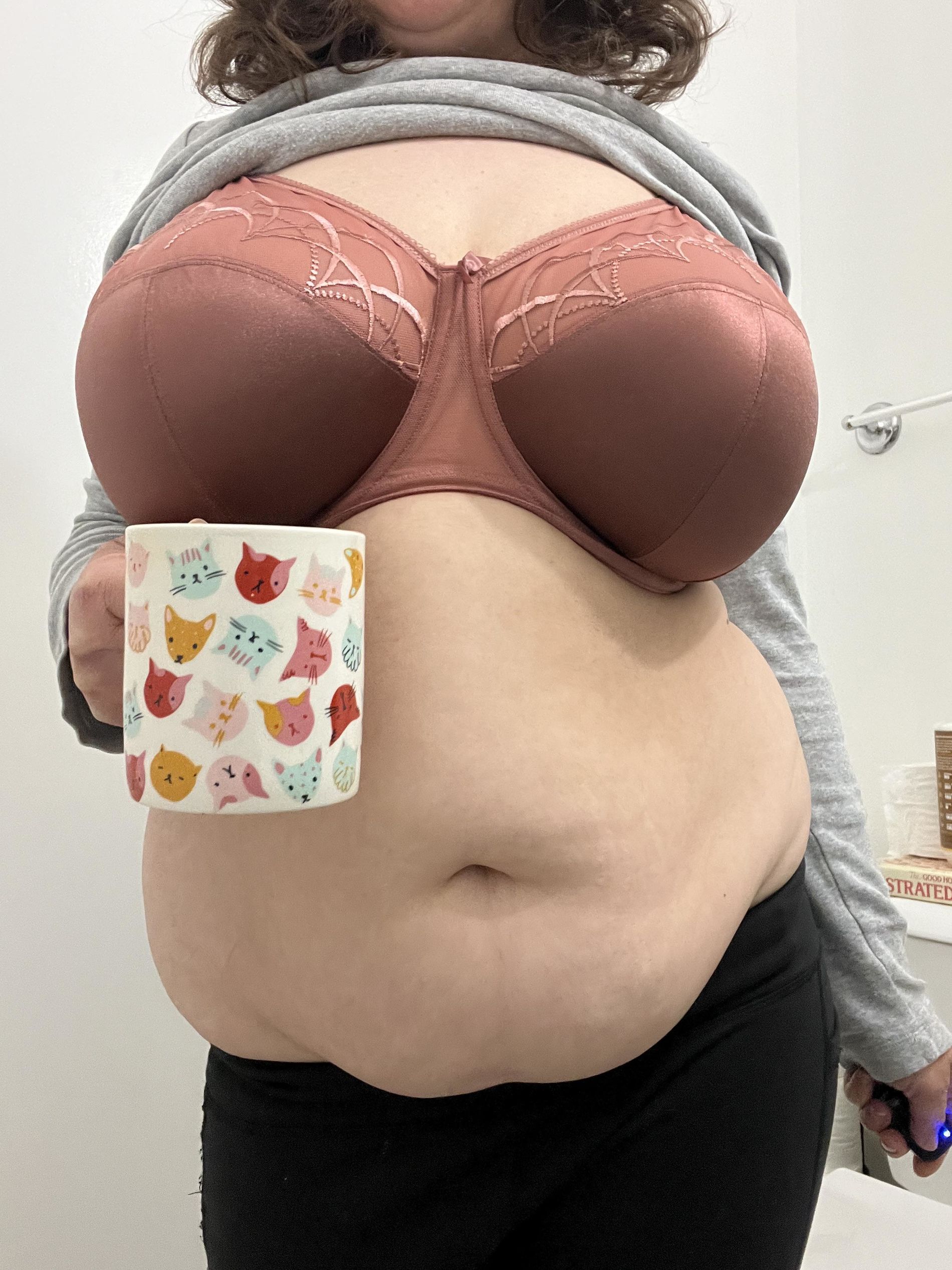 Вот то, что купила удачный бюстгальтер. Она, наверное, и радуется. С таким объёмом груди. Хороший бюстгальтер подобрать тяжело.