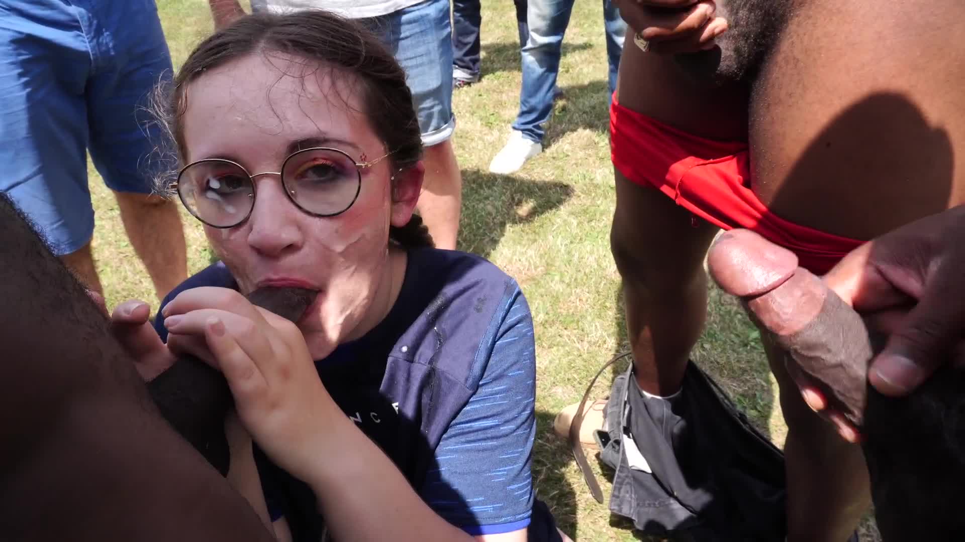 Нравится девчонке очень негритянский хуй сосать. И количеством огромным ее вряд-ли испугать. Она рада, что так много хуев тычут ей в лицо. Все ей хочется потрогать, все охота пососать. И конечно же не против их в себя она принять.