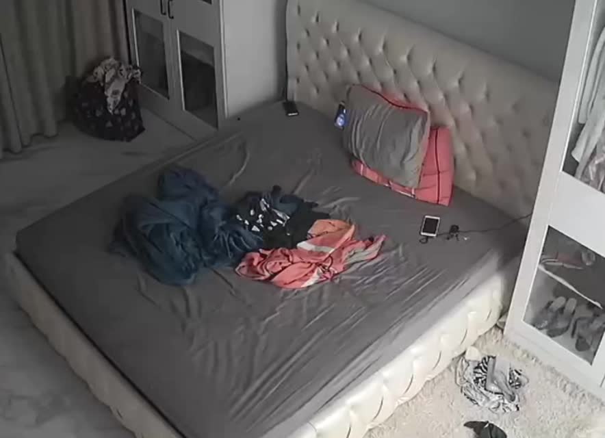 Девочка снимает на телефон как мастурбирует не подозревая,что в спальне установлена скрытая камера.