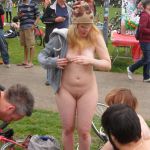 Молоденькая пышка в голом велопробеге и с расписанным телом