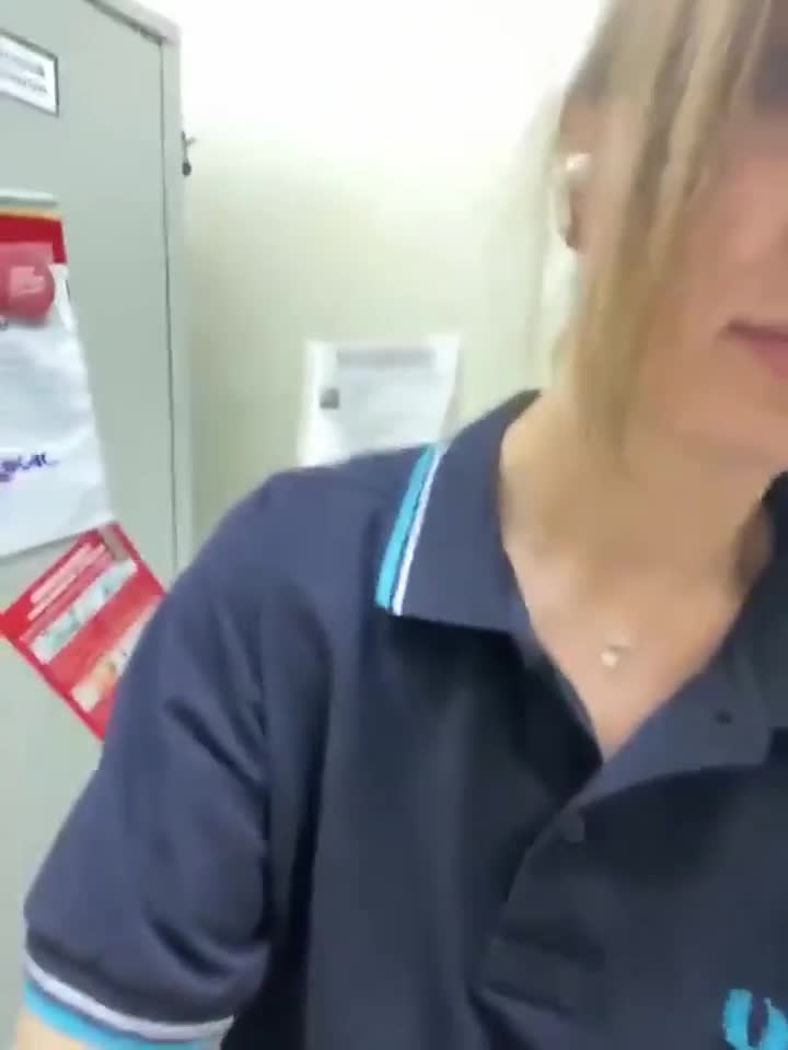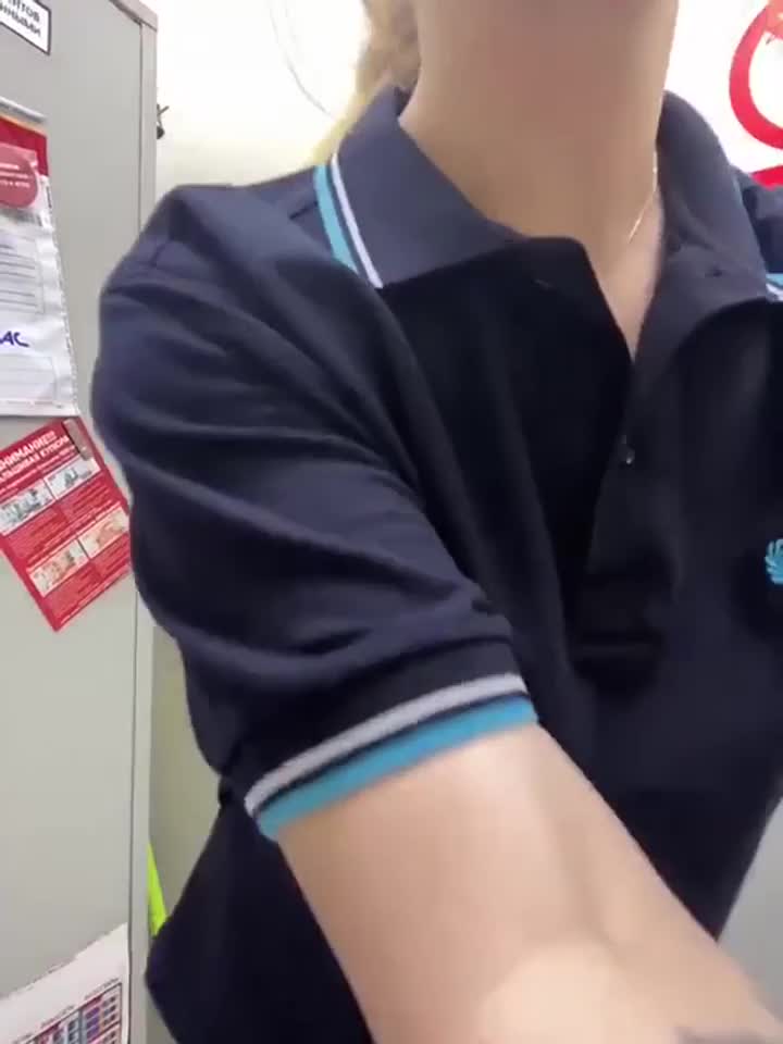 Малышка так перевозбудилась от работы что решила в подсобке немного выпустить пар.