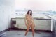Молоденькая девчонка со стоячими титьками и круглой попкой позирует на фоне спорткомплекса...