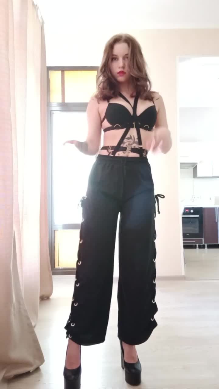 Портупея, конечно, подобрана классно. Такой фигуре брюки и не нужны.