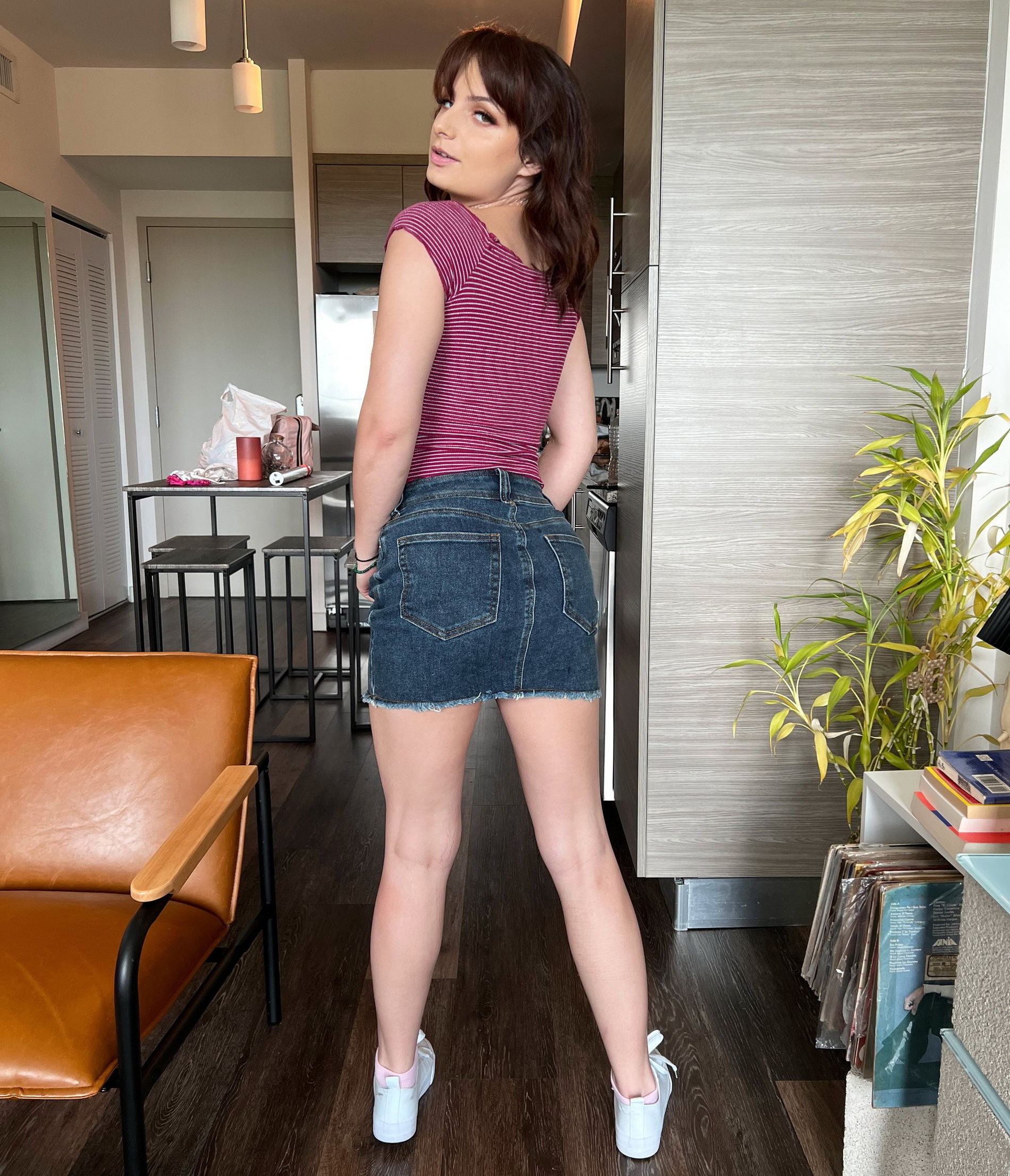 Шатенка пришла домой.
