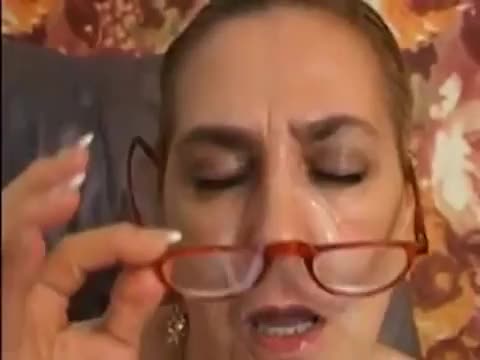 Привлекательная зрелая женщина в красных очках трахается в обе дырки и с удовольствием слизывает сперму