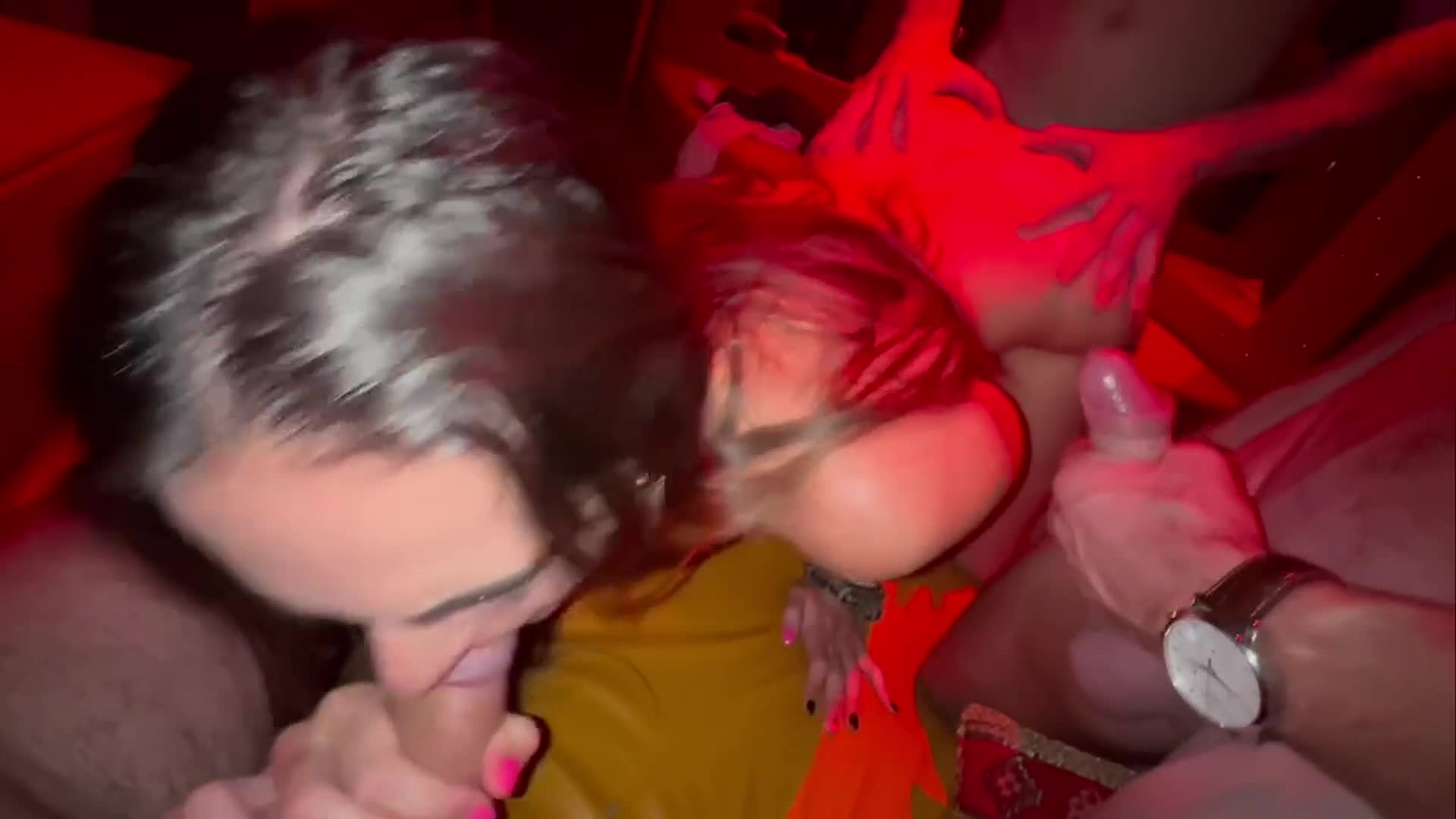 в какой-то сауне мужики вместе и по очереди трахают девушку