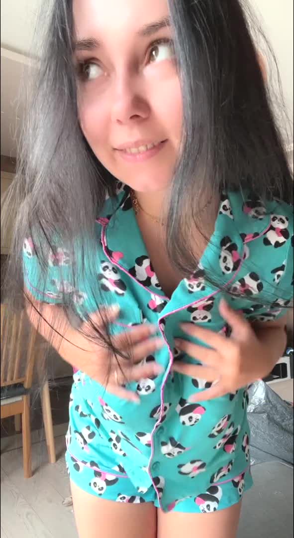 Наконец-то эта милаха заголила и показала свою замечательную грудку.