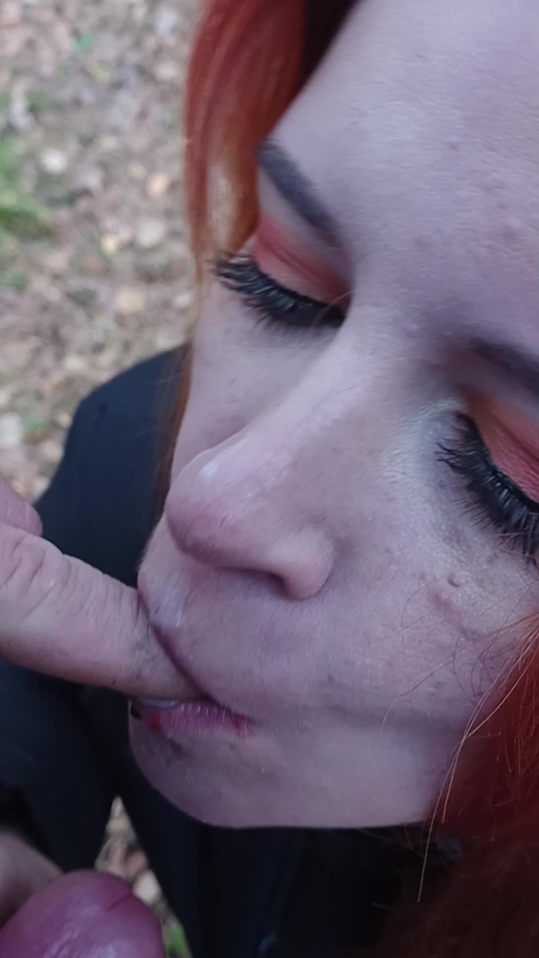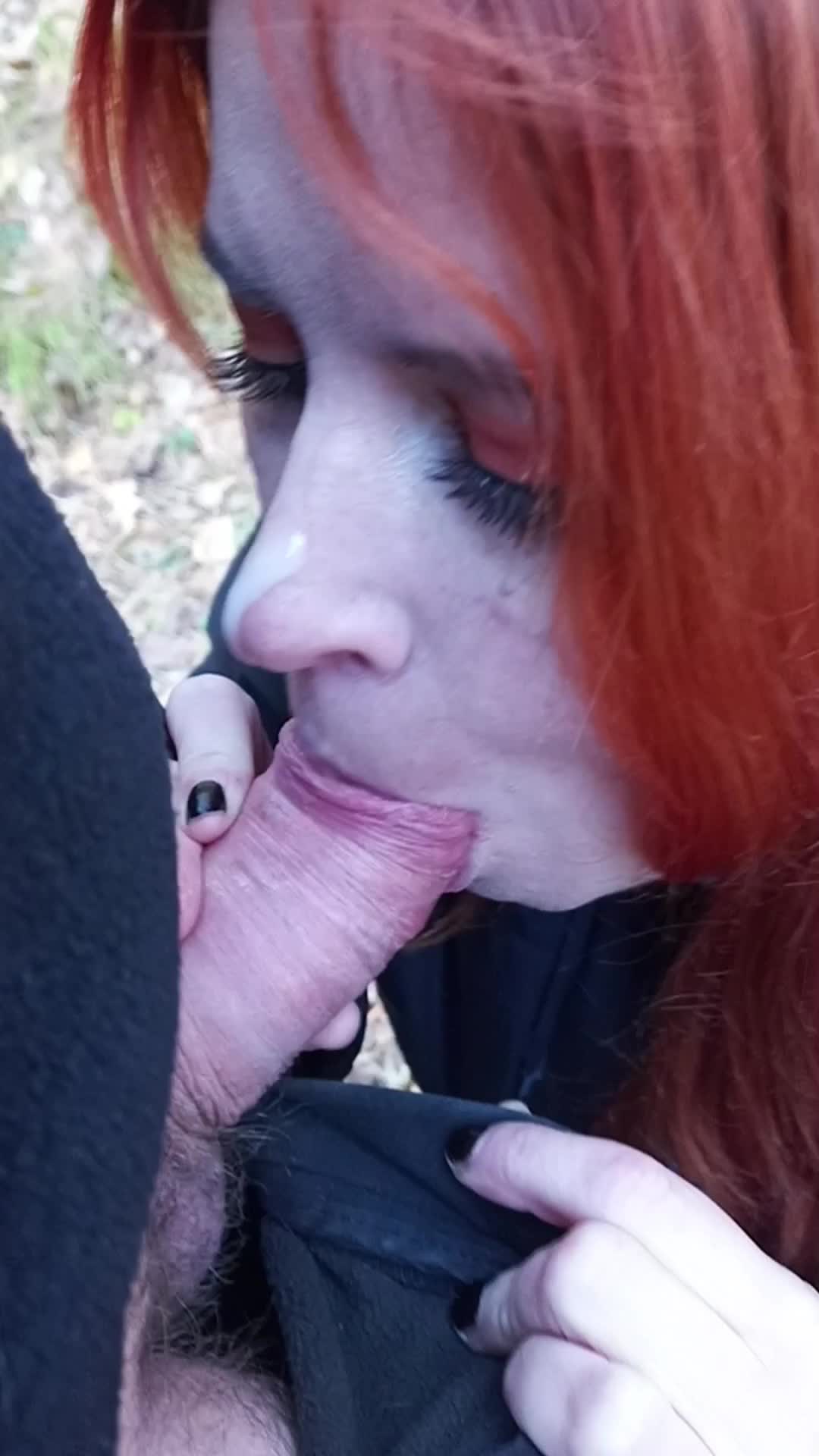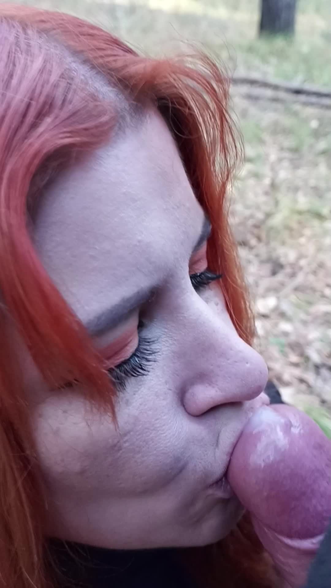 Всегда готова сосать и получать сперму. Даже на прогулке