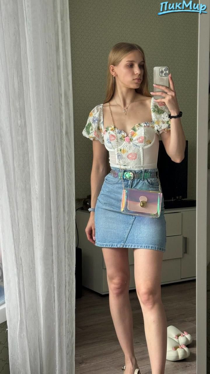 стройная блондиночка фоткается у зеркала показывая всем фигурку