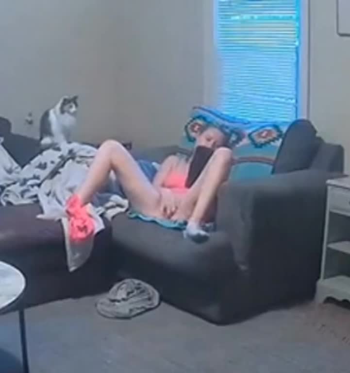 Девушка мастурбирует и кончает не зная о скрытой камере