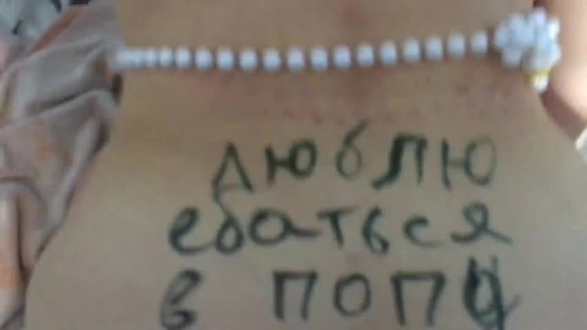 Мужик ебет шлюху в жопу и пишет надписи на её теле. Потом она садится очком на самотык и сосет его кол, а далее они самоудовлетворяются на глазах друг друга