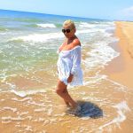 Взрослая тётя снова голенькая плюхается на пустынном пляже