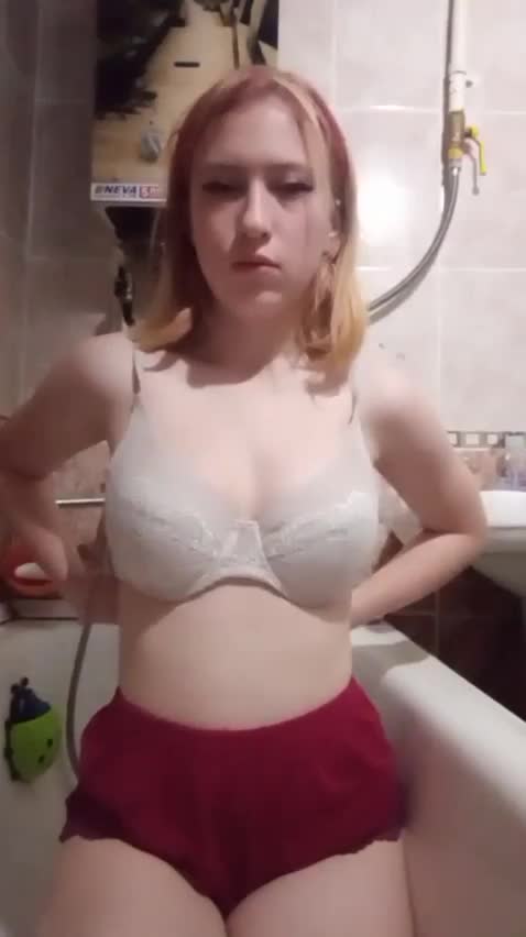 Шикарная домашняя девчуля, уединившись в ванной запилила видосик с собой в главной роли. А почему бы и нет, прелести у нее шикардосные
