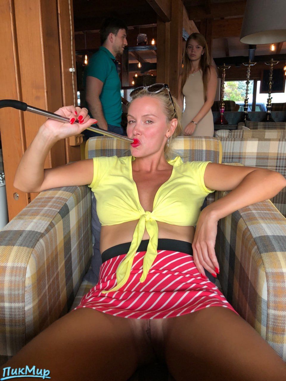 Лена в кафе светит свой киской и грудью