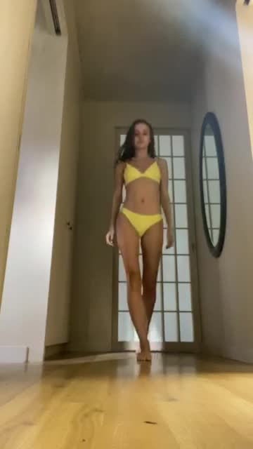 стройная девушка примеряет бельё