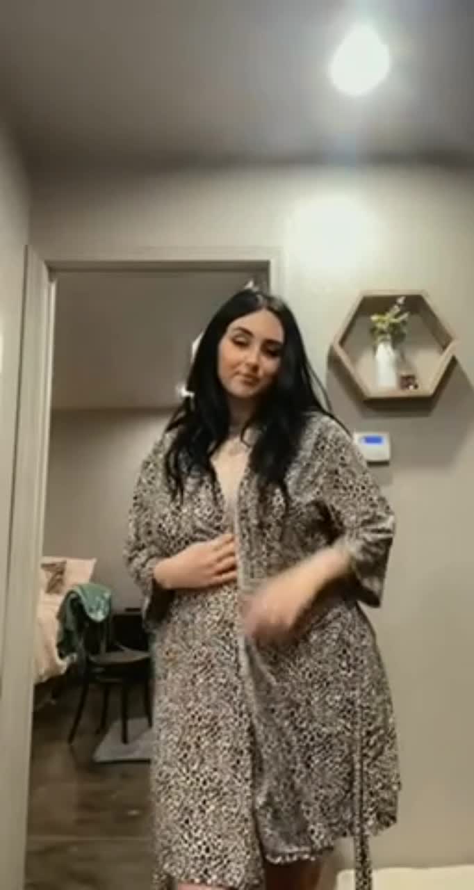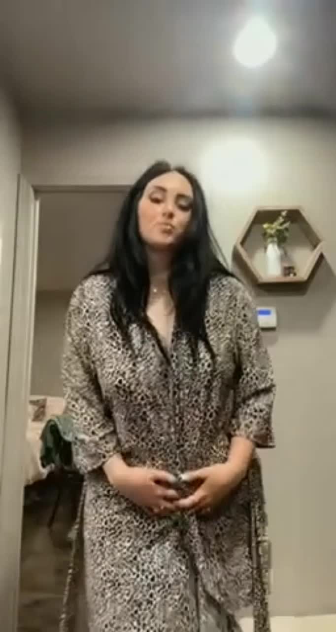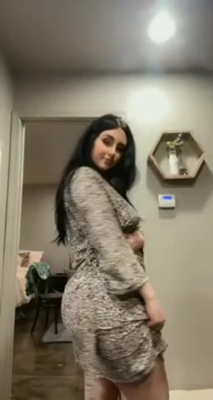 Тут и в халате видно, что жопа у нее бомбических размеров. Точно не промажешь.