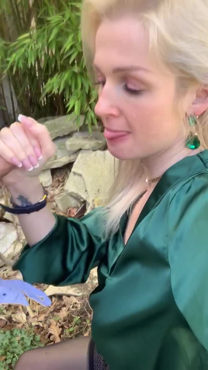 видео с блондинкой которая в кустах взяла член в рот и подставила пизду