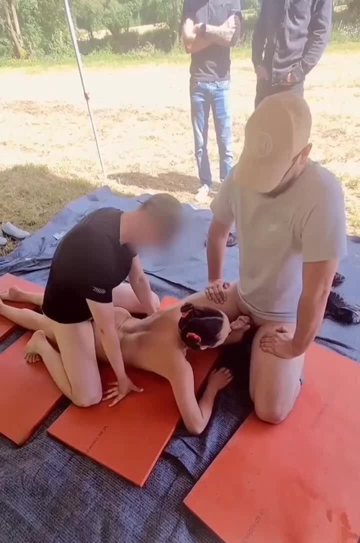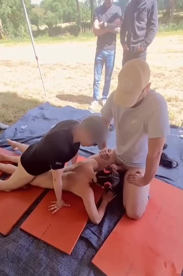 Муж снимает как на отдыхе его жену трахает множество желающих и кончают ей на лицо и в рот.
