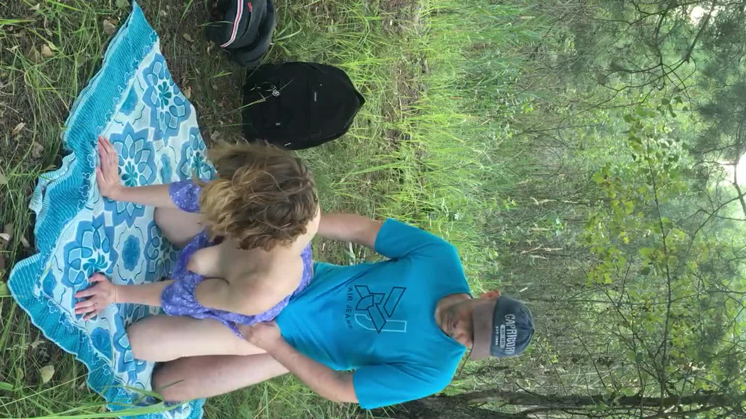 Парочка экстремально потрахалась в парке. Женщина явная шлюха,не боится быть замеченной, почти обнажилась, а вот мужичок беспокойно озирается по сторонам.