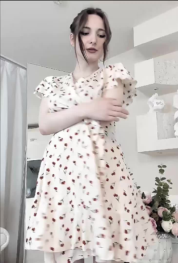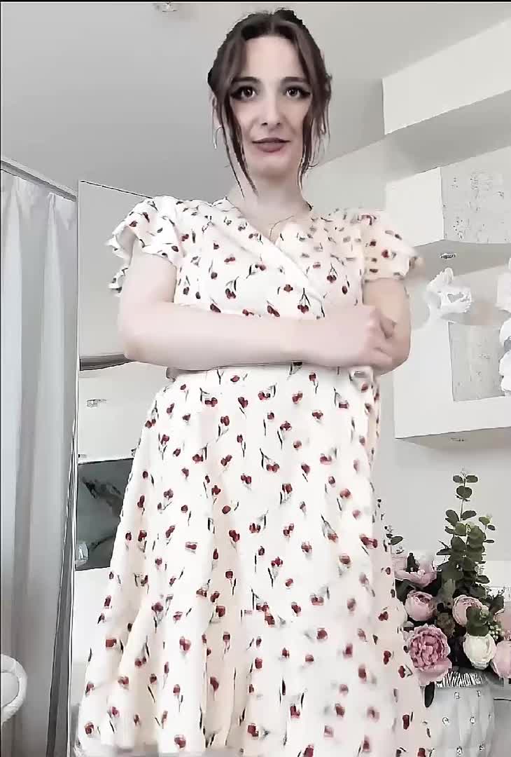 Красивая девушка дразнит зрителей, но в итоге демонстрирует свою великолепную грудь.