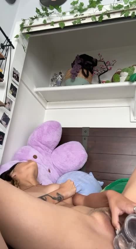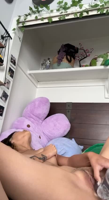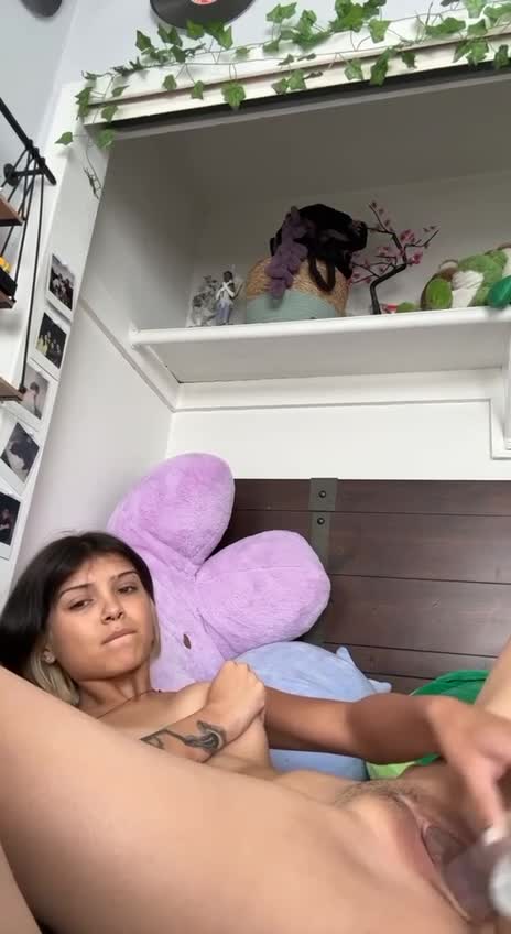 девка трахает пизду стеклянным хуем и кончает