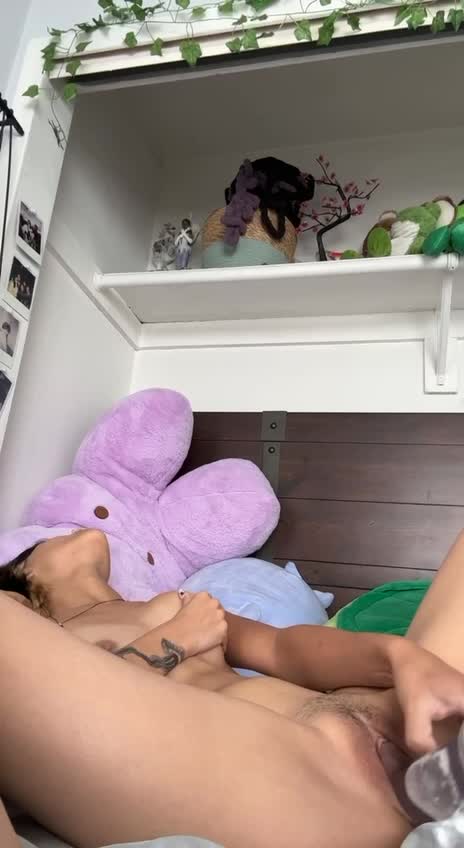 Пенис стеклянный девка нашла. Очень умело в письку ввела. И даже не сломала!