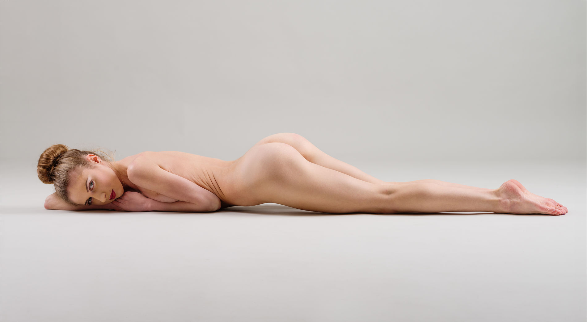 Стройная рыжеволосая Анастасия позирует, демонстрируя все свое тело