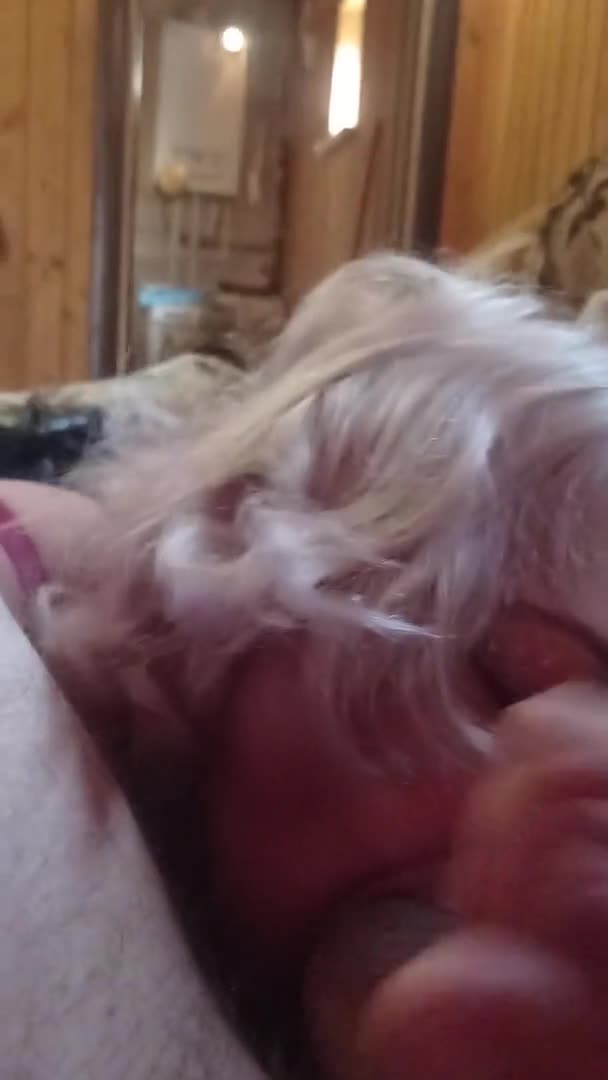 Зрелая блондинка жена вылизывает яички и анус мужу пока тот дрочит член и получает сперму лицо!
