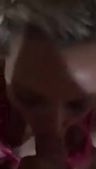 Зрелая женщина сосет член мужчине и получает обильный камшот себе на лицо!