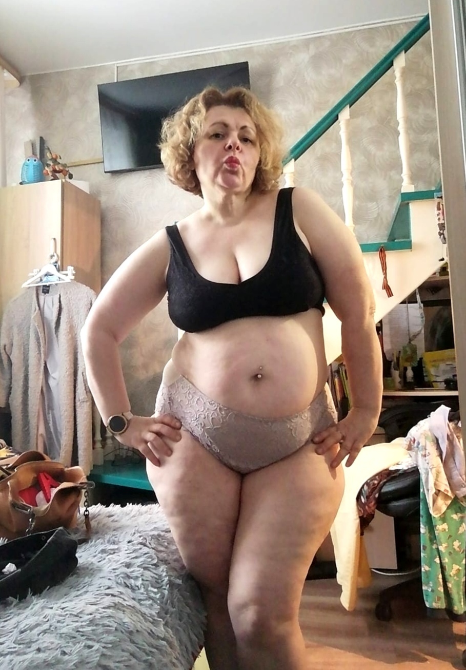 нормальная наша тетка за 50. в полная и с дыньками. а селфит богато себя в сексшоповском белье, особенно со спины