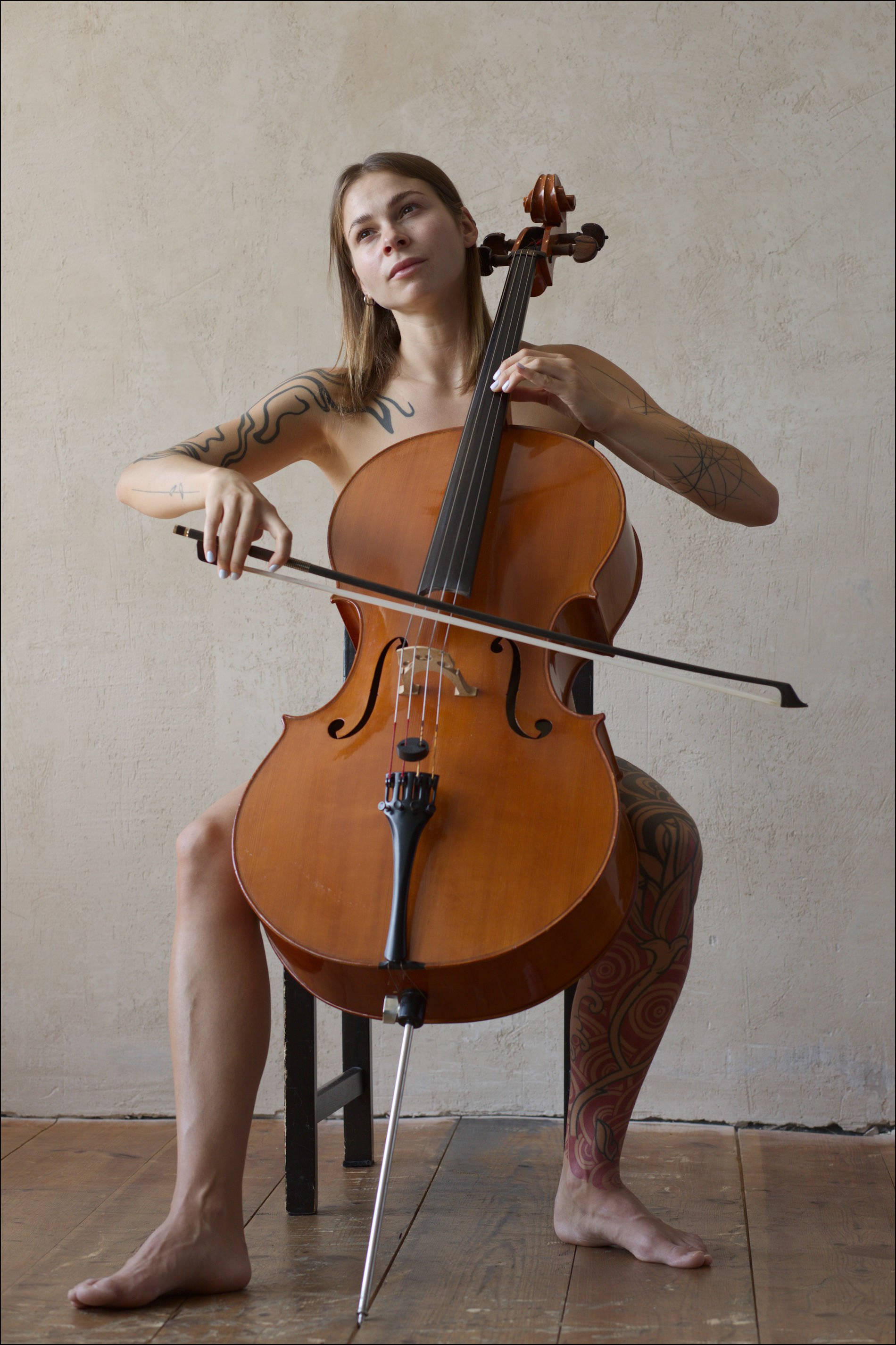 У Полины три страсти в жизни: игра на виолончели, татуировки и позирование обнажённой.