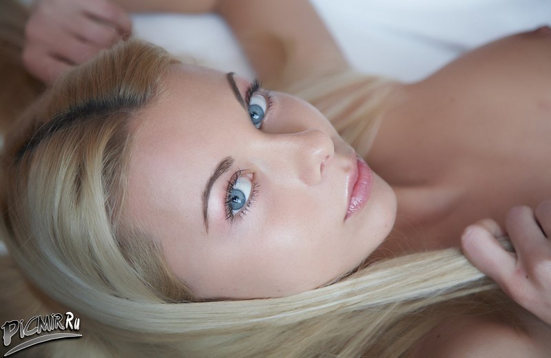 Супер хороша эта постельная обнажённая красотка-голубоглазка!