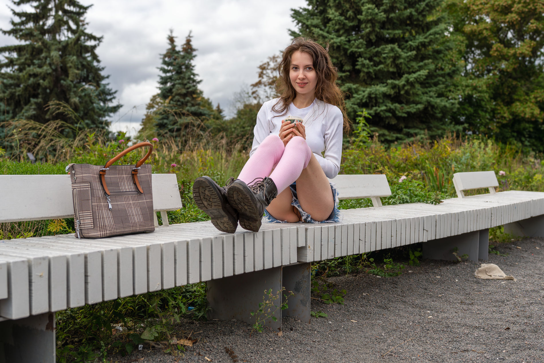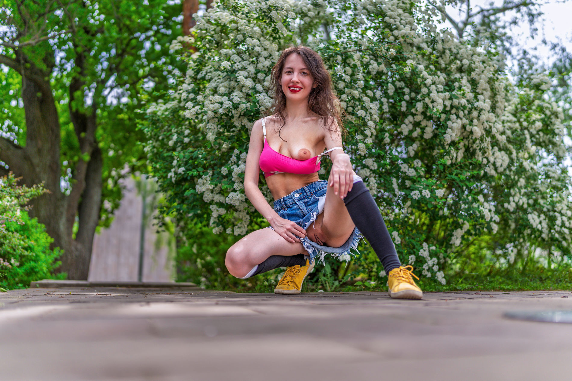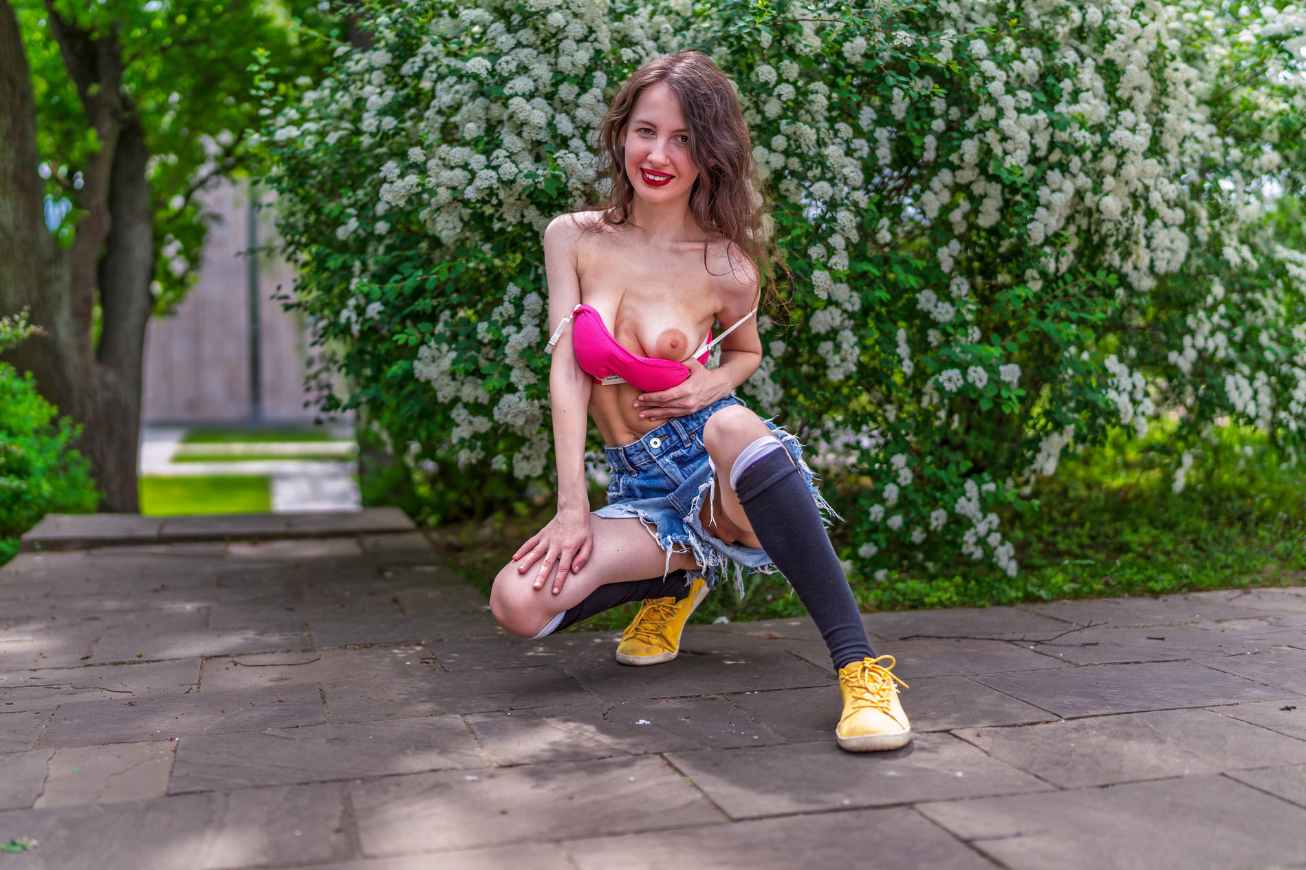 Много фотографий Леночки, на которых она раздвигает ноги на улице, показывая свою киску.