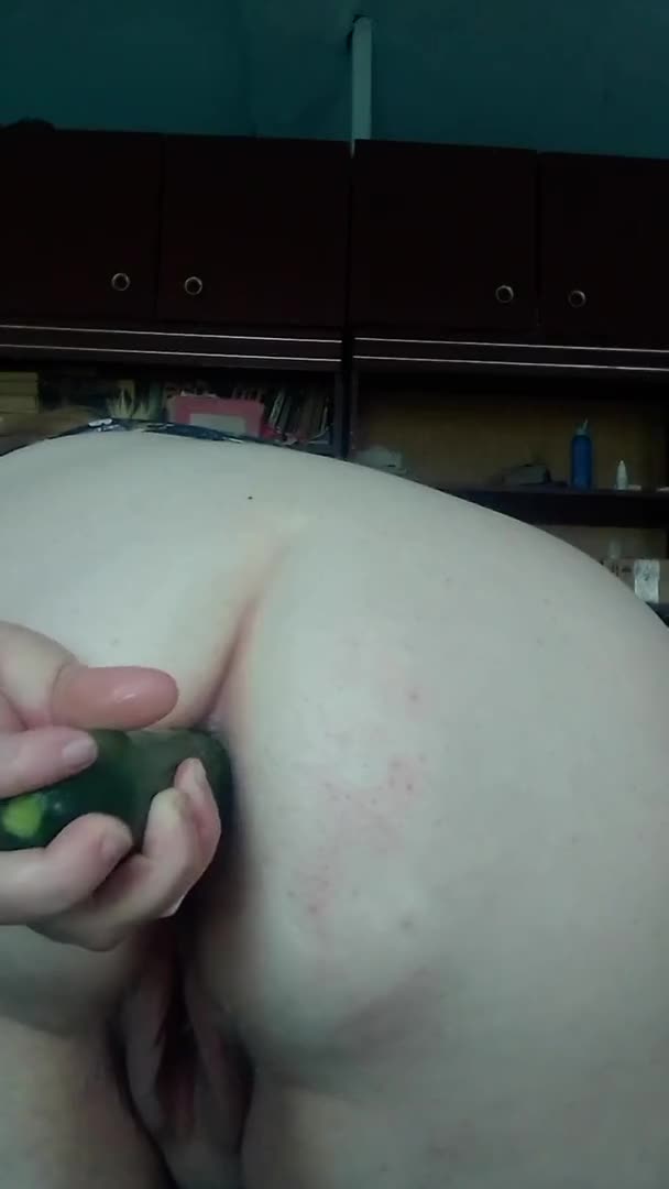Толстуха трахнула свои дырочки огурцом