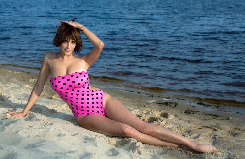Девушка, бладательница огромной груди, всегда привлекает внимание на пляже. В купальнике и тем более без него.