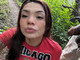 девица в спортивных штанах и топе. минет от первого лица
