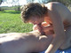 Дама в поле хуй сосет, сперма в рот рекой идет!