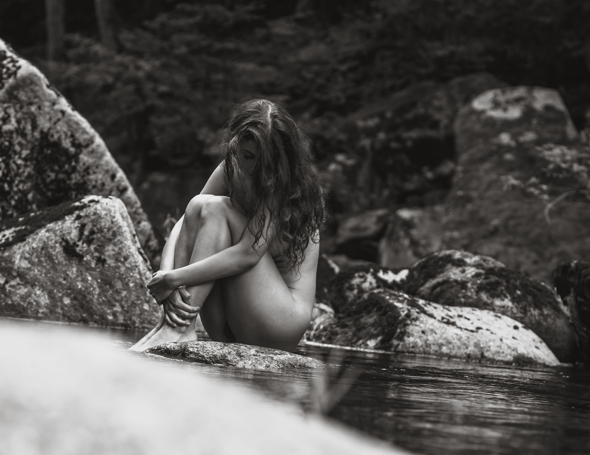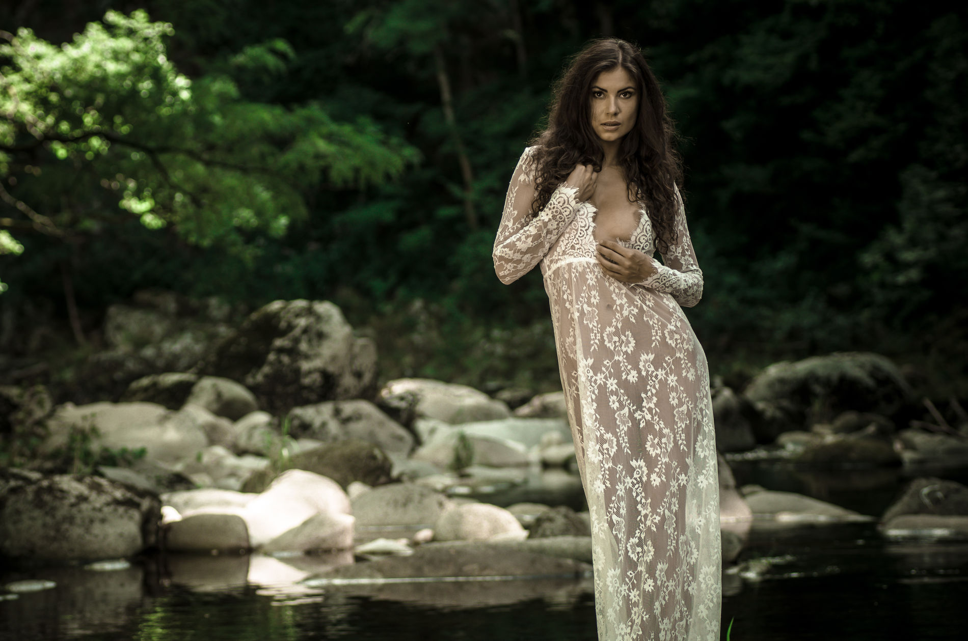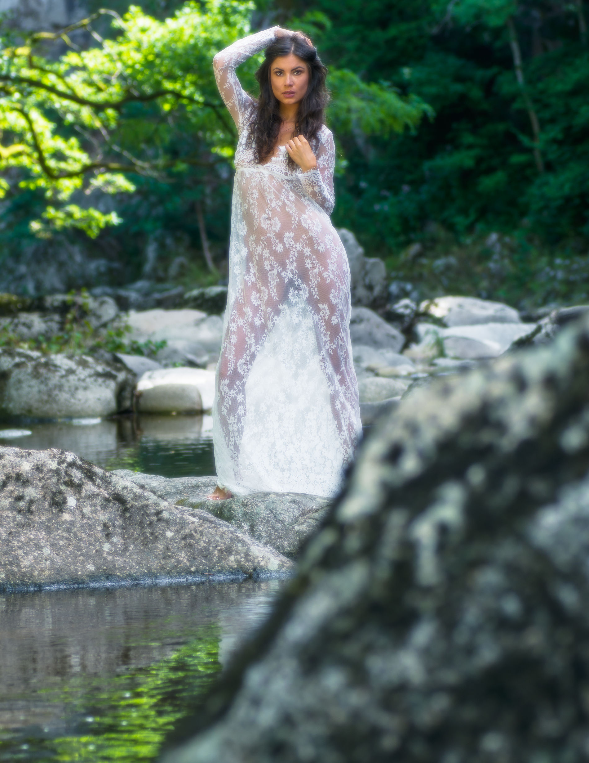 Её обнажённая фигурка, сидя на камне, смотрится интересно и классно. А в белом прозрачном одеянии. Это просто секси. Видение на берегу.