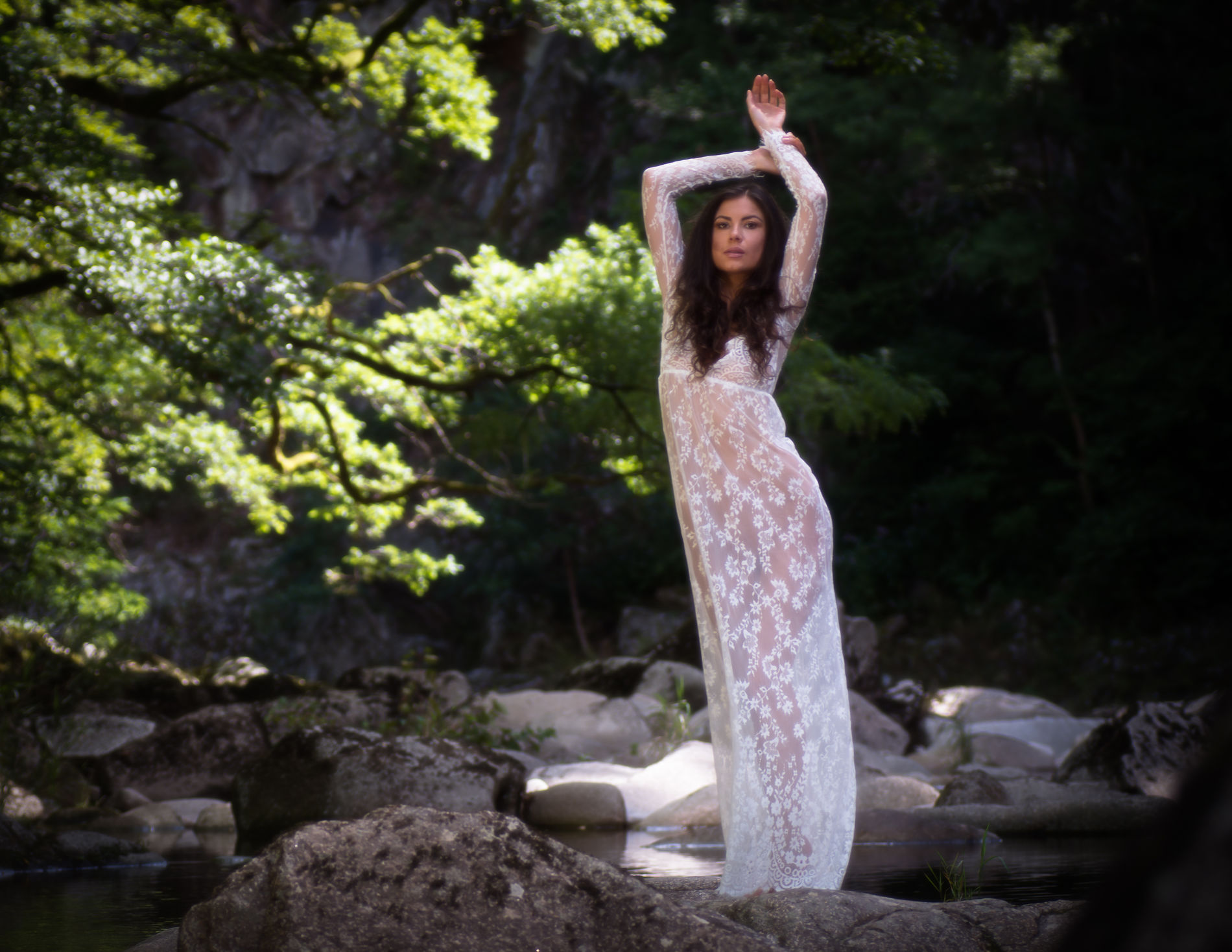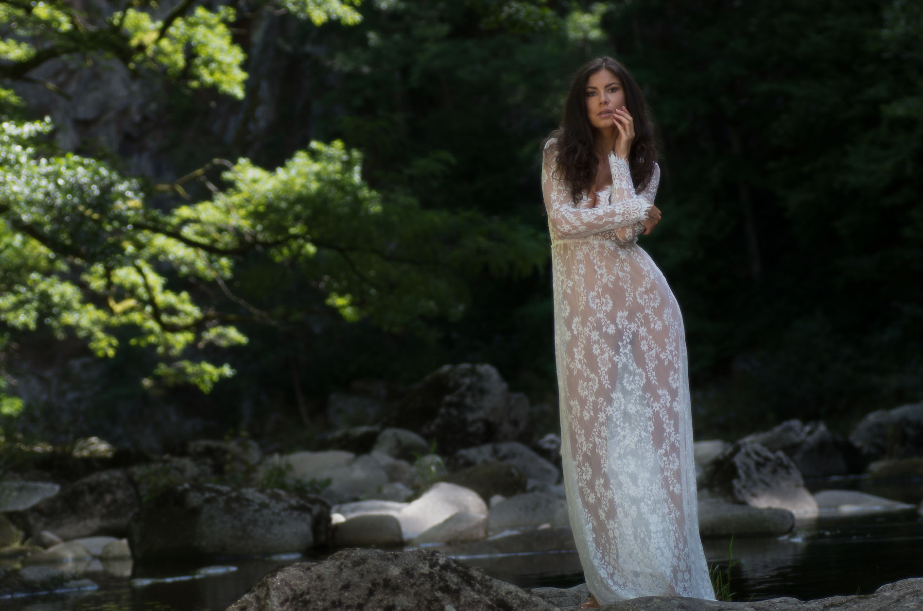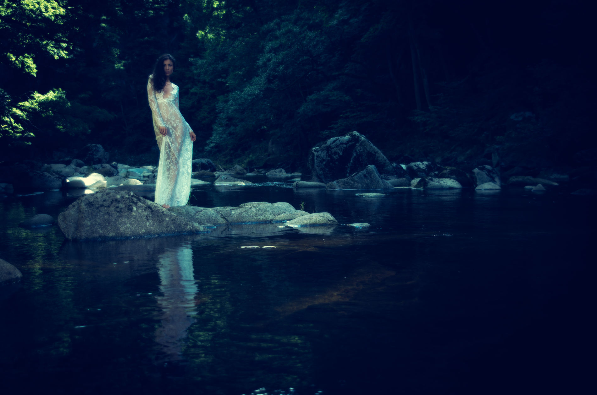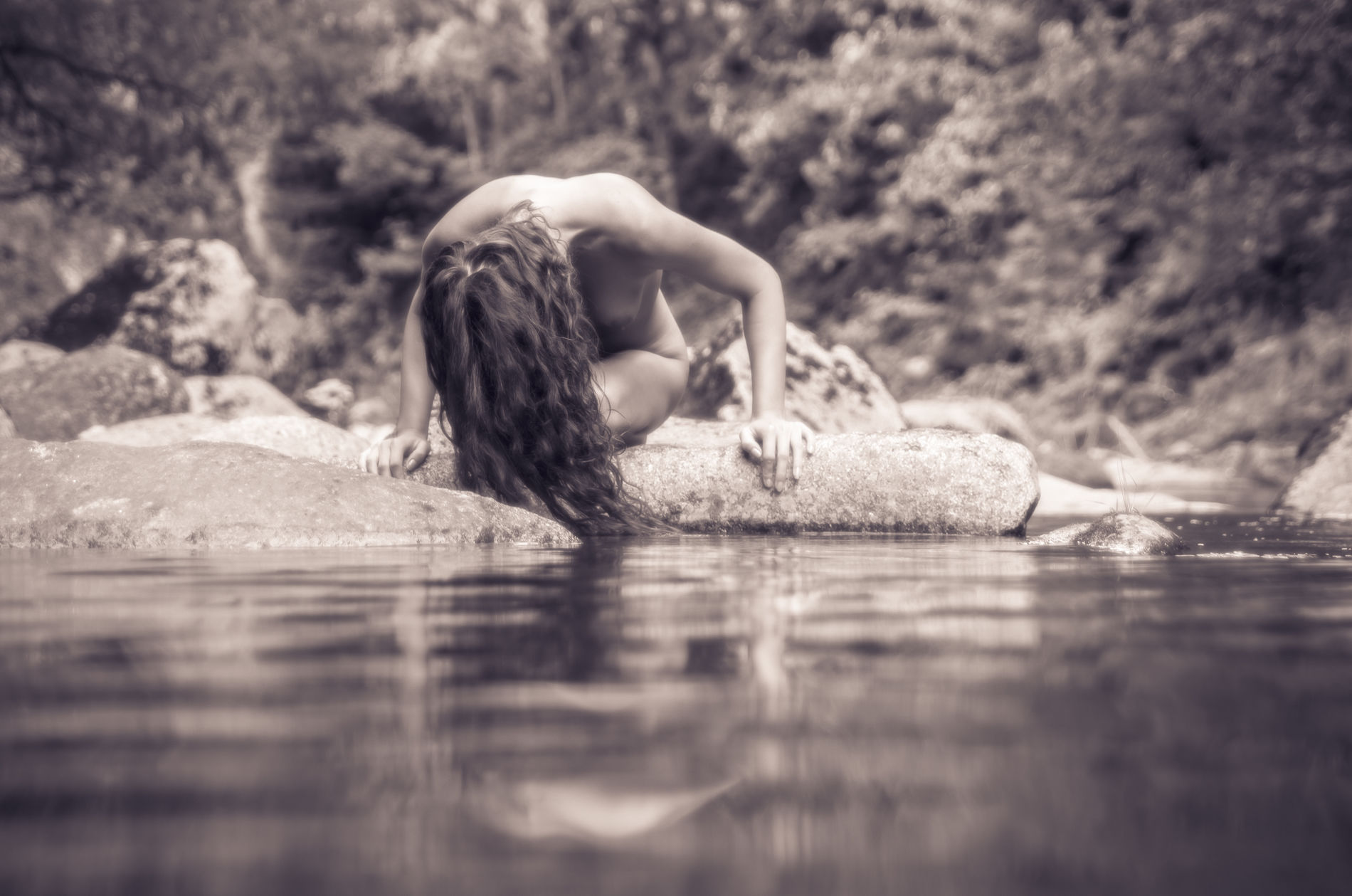 Её обнажённая фигурка, сидя на камне, смотрится интересно и классно. А в белом прозрачном одеянии. Это просто секси. Видение на берегу.