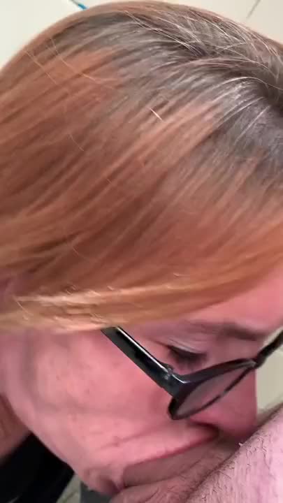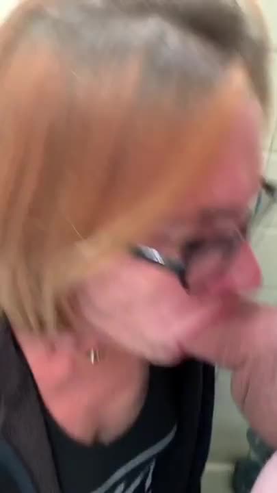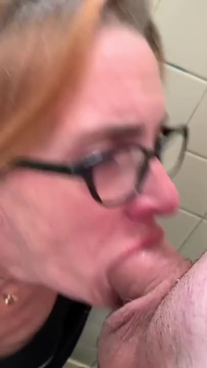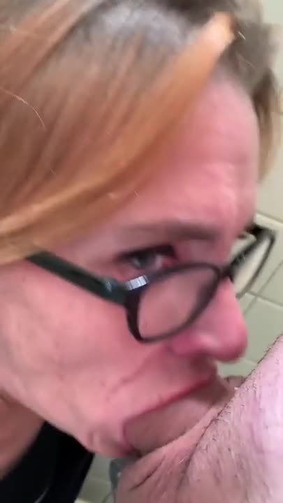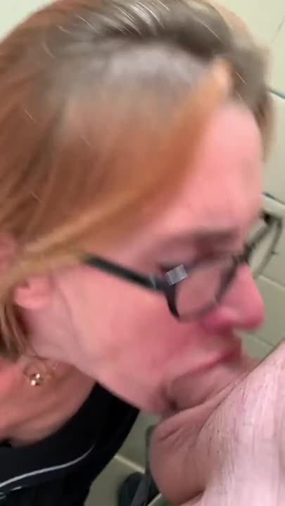 Зрелая женщина в очках сосёт член в туалете. Предположительно за деньги.