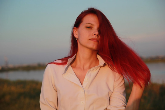 Попкой, славно Люда светанула. А при разном освещении. У неё и цвет волос, разный выходит. От рыжего, до фиолетового, на столе.
