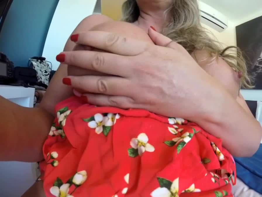 Зрелая женщина показывает и ласкает рукой свою набухшую киску и шикарные груди по веб камере