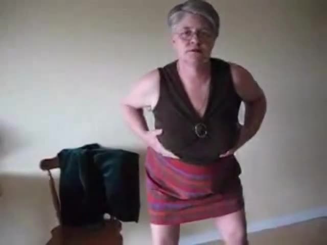 Пожилая женщина в очках раздевается и начинает мастурбировать.