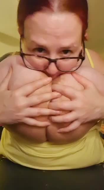 Она сосет свои огромные сиськи