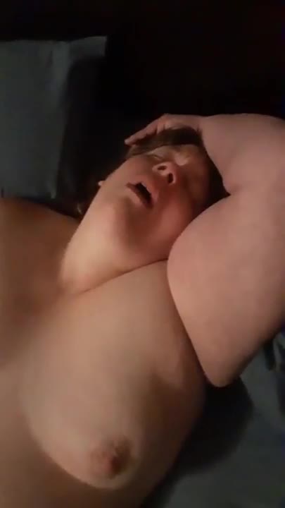 Очень полная девушка мастурбирует. У неё непропорционально маленькая грудь.