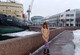 Волга (Элен Волга) позирует в зимнем Санкт-Петербурге у реки.