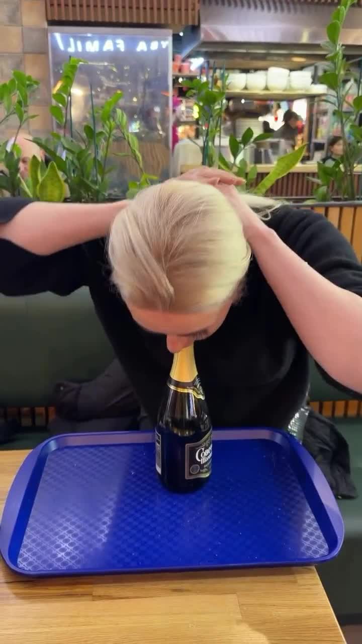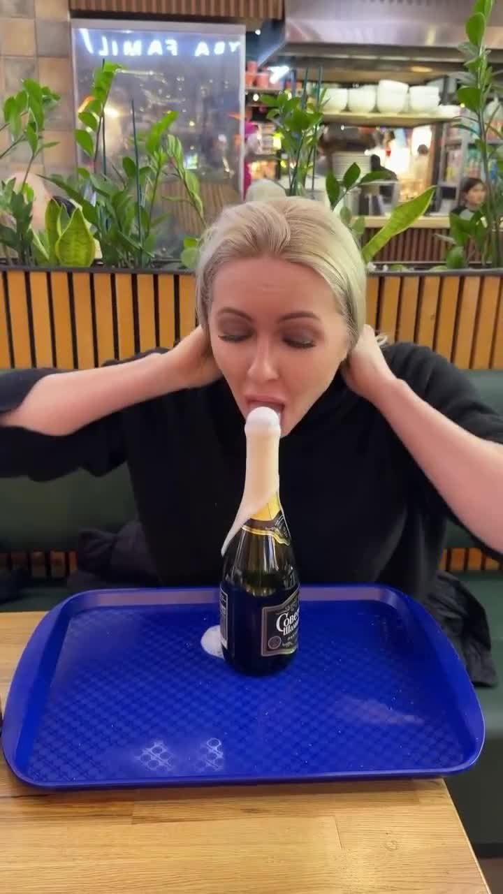 Умелица))) даже бутылка в её руках кончает!Чудо женщина